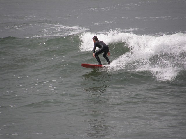 Einige Meilen nachdem wie L.A. hinter uns gelassen haben, war es dann endlich soweit - unser erster Blick auf den Pazifik, der morgens noch etwas im Dunst lag. Trotzdem waren am Horizont gut eine Reihe von Ölbohrinseln zu erkennen. Auch die ersten wagemutigen Surfer waren schon auf der Suche nach der perfekten Welle.