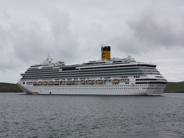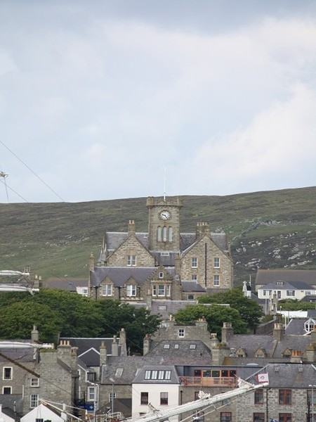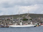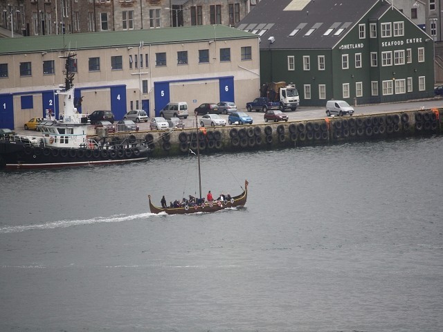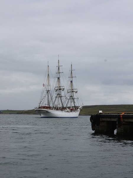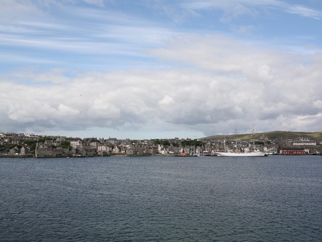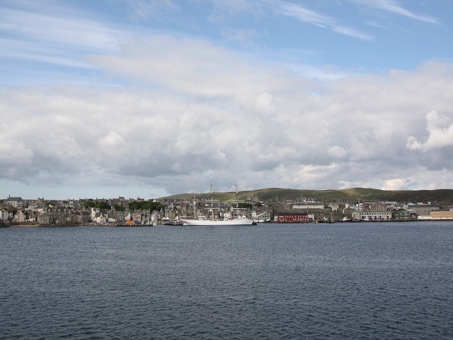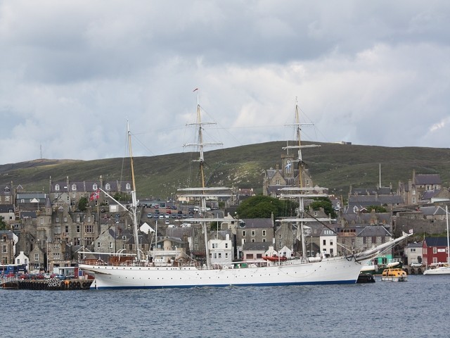Heute war also das erste Mal Land in Sicht. Als wir morgens zum Frühstück gingen lag die Costa Pacifica schon in der Bucht von Bressay auf Reede, Backbord querab lag die kleine Stadt Lerwick, mit knapp 7.500 Einwohnern der Hauptort der Shetland-Inseln. An der Pier lag auch schon die "Statsraad Lehmkuhl", eine norwegische Dreimastbark mit Heimathafen Bergen.