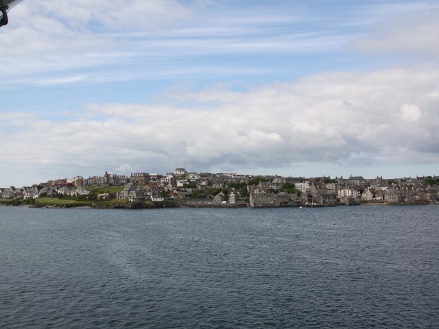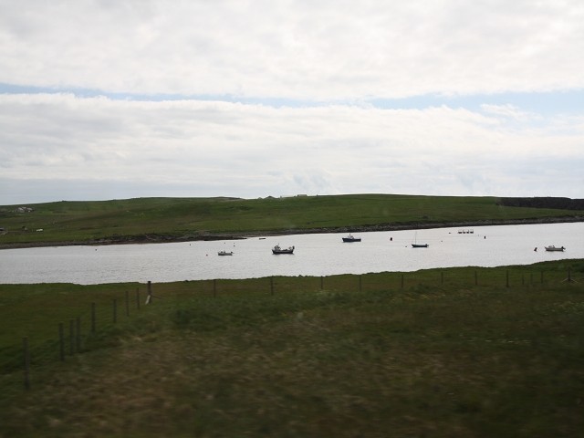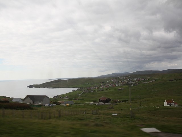 Das Wetter meinte es nicht schlecht mit uns, der Himmel war zwar bewölkt, aber es war trocken. Nach einer kurzen Fahrt durch die Gassen von Lerwick ging es in die grüne hügelige Landschaft der Insel, vorbei an "Wicks" und "Voes" (so hießen die kleinen Buchten)