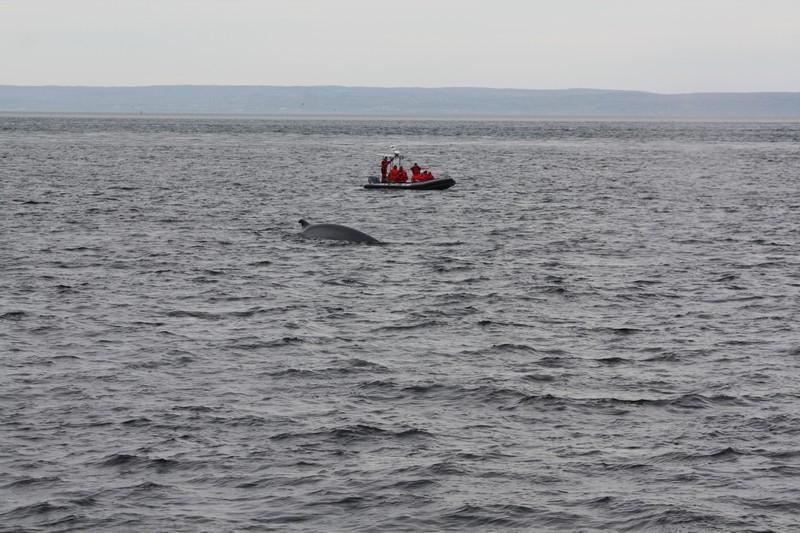 Heute war früh aufstehen angesagt, die Wale warteten. Frühstück im Hotel war nur dürftig, aber eine Niete zieht man ja meist pro Urlaub und dieses Hotel war wohl unsere. Macht nichts, war auf jeden Fall sauber und die Aussicht genial. Baie St. Catherine besteht aber auch nur aus ein paar Häusern, ein kleiner Anleger für die Walbeobachtungsboote. Und genau so eines wartete auf uns morgens um 10 Uhr (was für eine Uhrzeit für eine Nachteule wie mich). Das Wetter war leicht trüb aber trocken und nicht so windig, also gute Bedingungen für eine Bootstour. Das Schiff war auch noch nicht voll, kein Wunder bei der Uhrzeit.