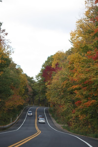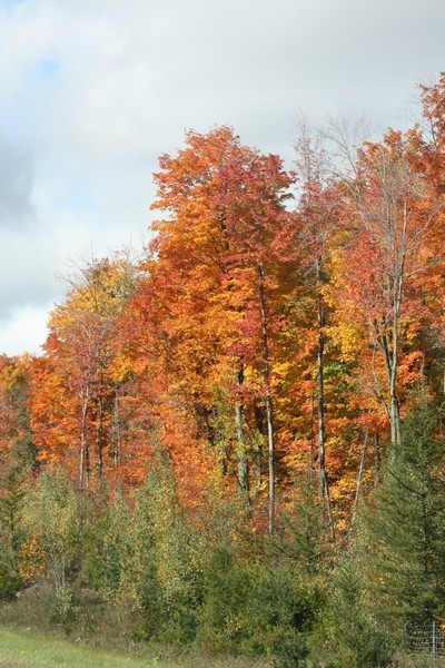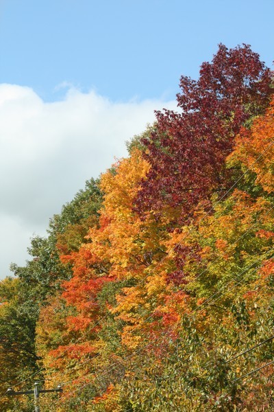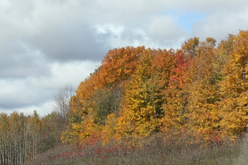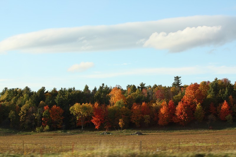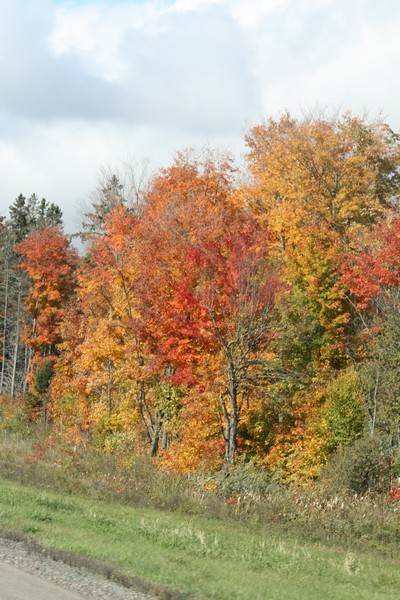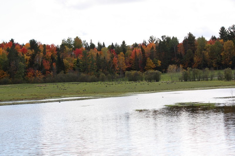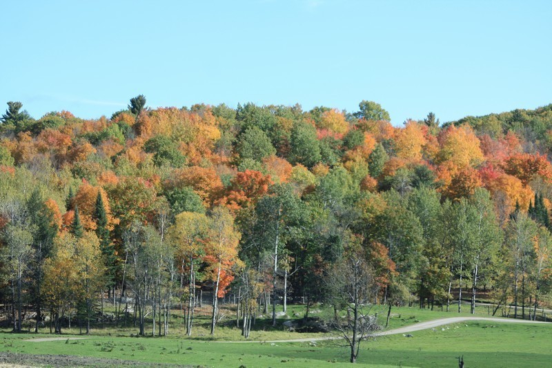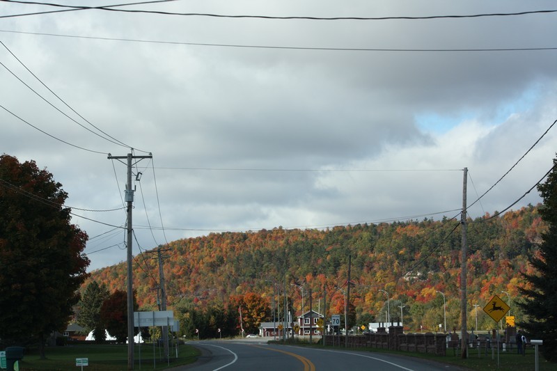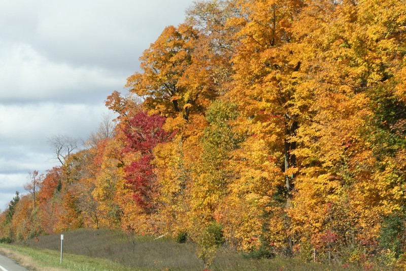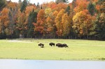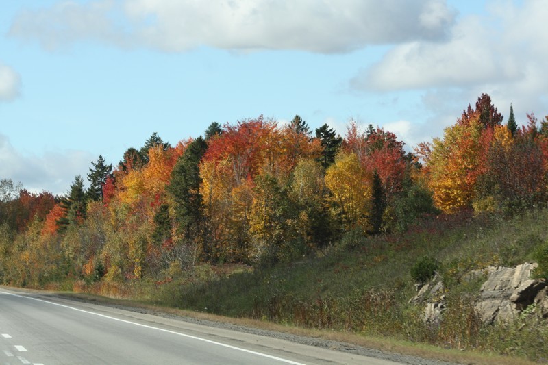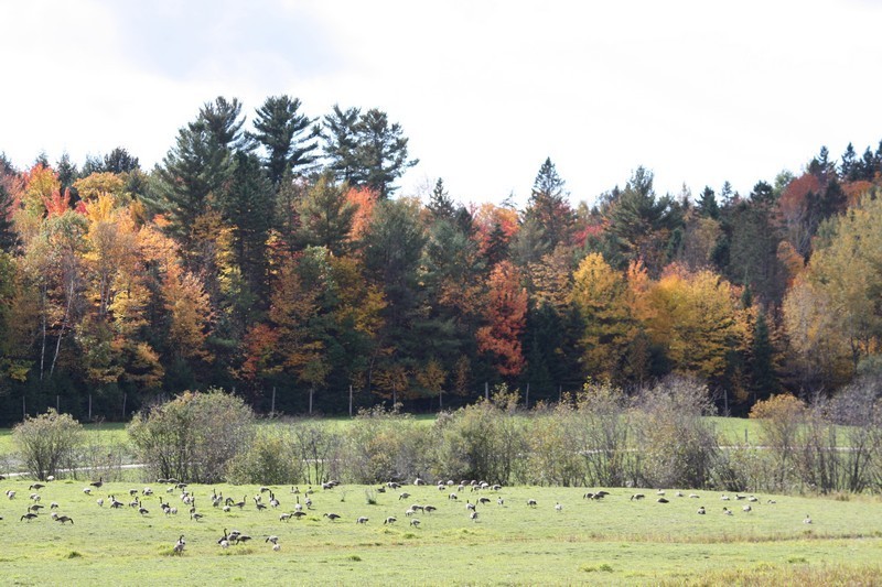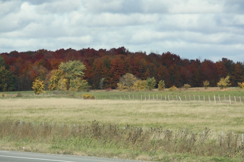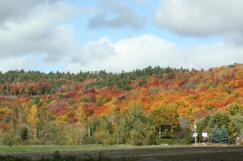 Also los, nach Montebello, ca. 100 km durch eine Landschaft die geprägt war von bunten Bäumen, aber auch Farmland mit dem einen oder anderen Steak auf Beinen. Die ersten Kilometer war noch Highway, aber auch die sind schön, keine Lärmschutzwände wie bei uns, man kann toll nach rechts und links schauen.