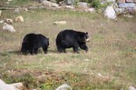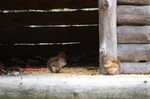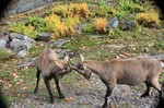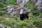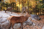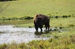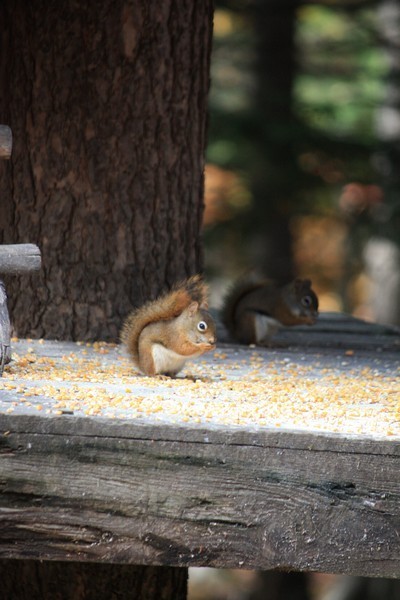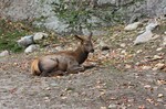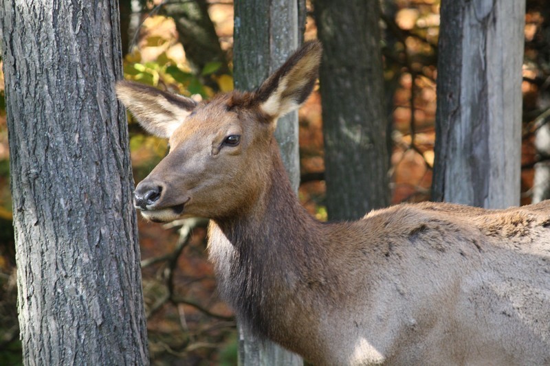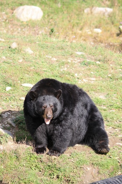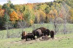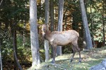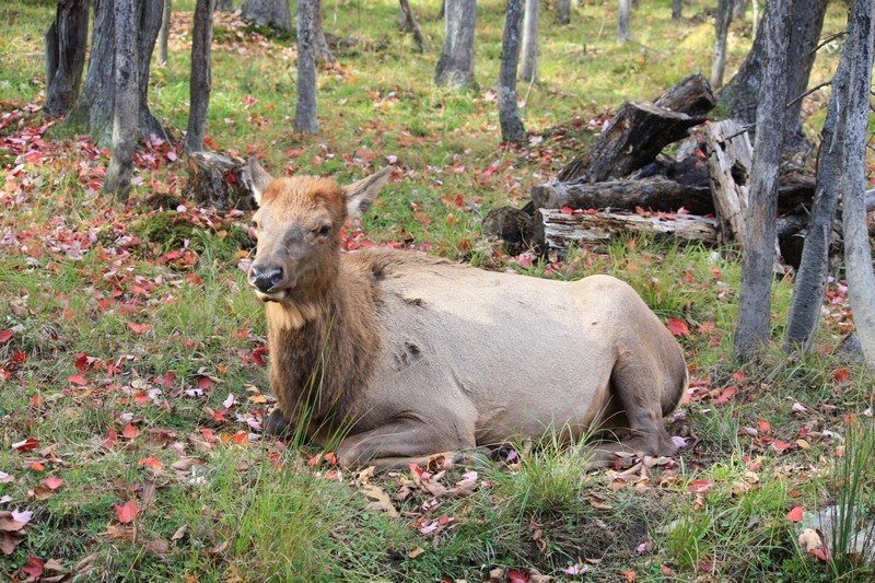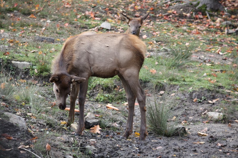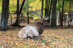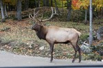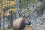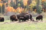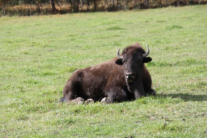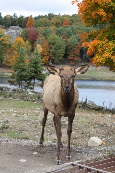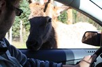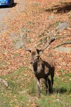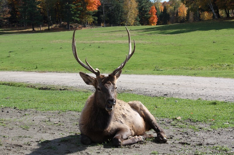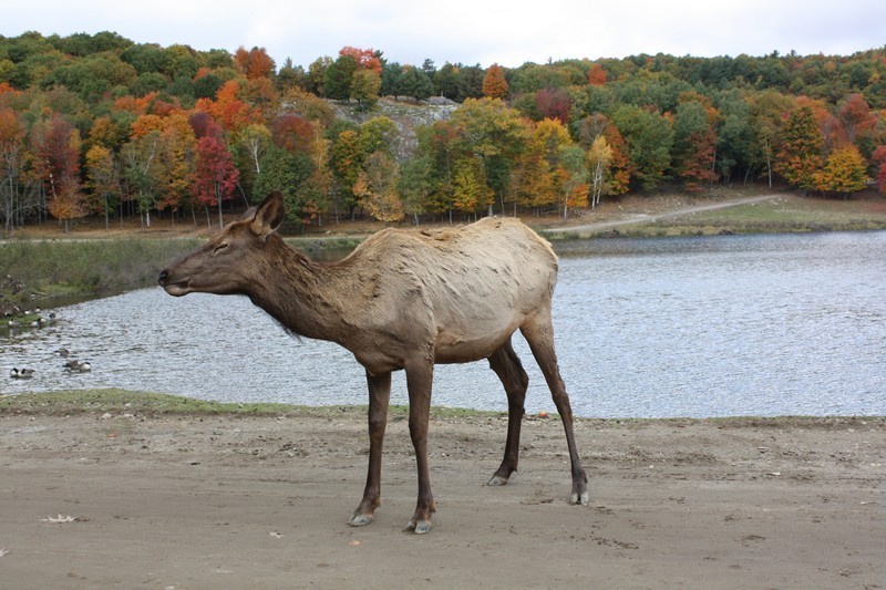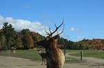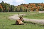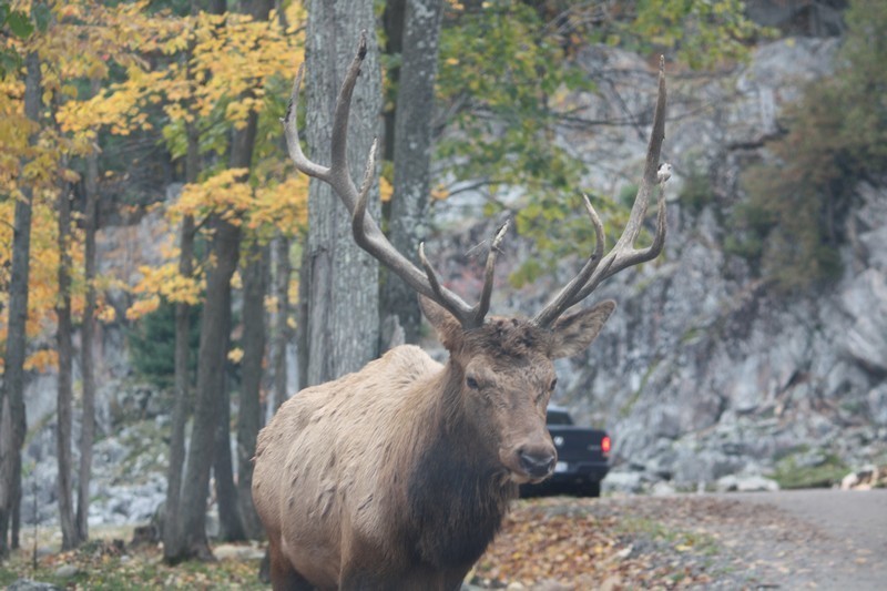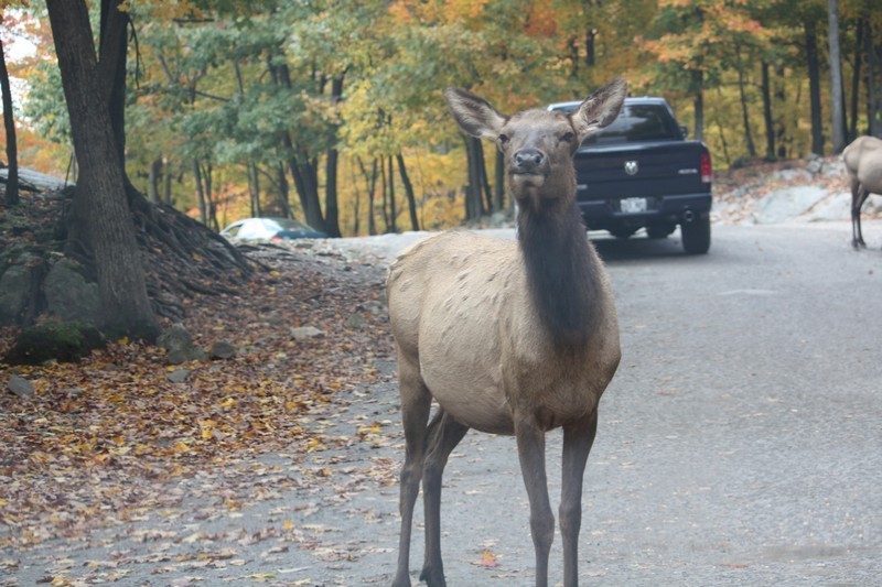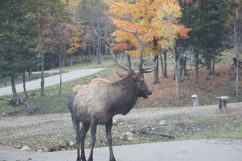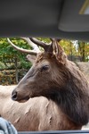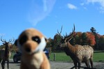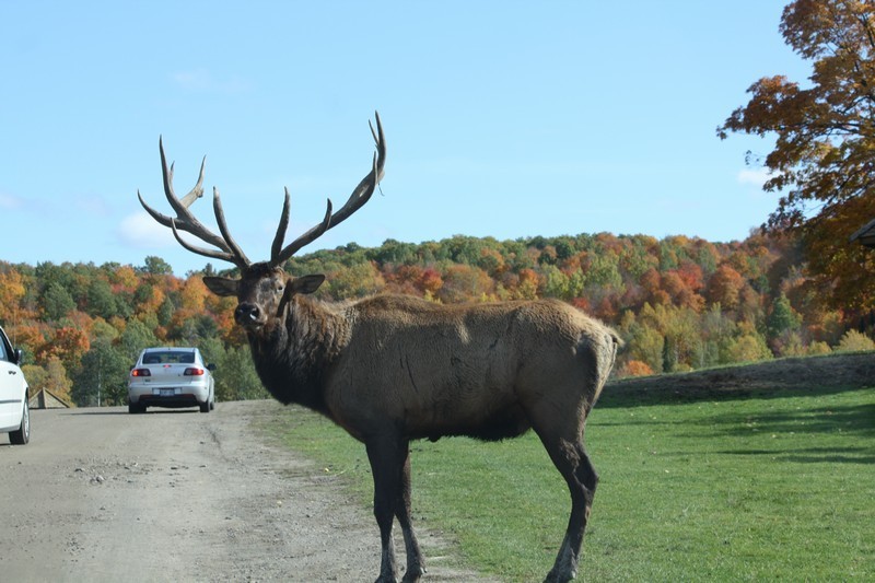 In Montebello angekommen ging es direkt zum Park Omega, Chris und ich haben uns schon richtig drauf gefreut. Ein 10 km langer Rundfahrtweg führt vorbei an Wapitis, Bisons, Elchen, Wölfen, Bären und allerlei einheimischem Getier. Man kann die Tiere bequem sehen, sie kommen direkt ans (und ins) Auto. Für die 10 km haben wir über fünf Stunden gebraucht, hinter jeder Kurve gab es neues zu sehen und erleben. Chris hat mehr als einmal geschimpft "Elsa geht aus dem Weg", "Fritz, beweg deinen Arsch" oder "Manni, nimm die Hufe von meinem Lack". War echt lustig :) Zwischendurch musste er aufpassen, keinen Wildschweingulasch oder Gänsebraten zu produzieren, die Viecher waren echt überall. Ein vorwitziger Wapiti hat sogar versucht meinem armen kleinen Erdmännchen die Nase abzubeissen, aber ich habe meinen Luki gerettet. An diesem Nachmittag sind über 400 (!) Bilder entstanden, hier eine kleine Auswahl: