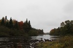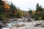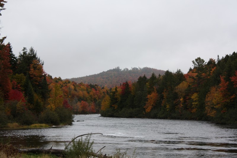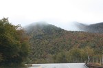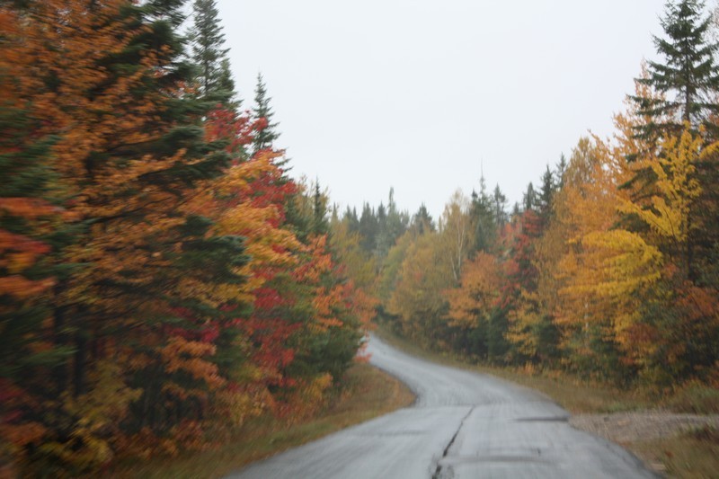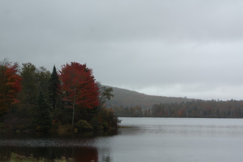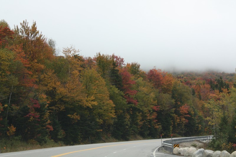 Morgens nach dem ersten Blick aus dem Fenster war das Wetter nicht wirklich besser. Wir hatten ja überlegt bei gutem Wetter vielleicht nochmal zurück zum Kancamagus zu fahren, das hat sich aber wegen Nebel dann auch erledigt. Also weiter uns erst einmal frühstücken. Wir haben ein Dorf weiter ein kleines Restaurant gefunden und zum erstenmal in diesem Urlaub so richtig American Pancakes gefrühstückt. Chris hatte eine Normalportion mit 3 Pancakes, von denen selbst er mich Ach und Krach zwei geschafft hat. Auch ich habe meine "Short Stack Portion" nicht schaffen können, aber die Dinger waren saulecker und die Reste sind in die "Doggie-Bag" gewandert und wurden zum Mittagessen umfunktioniert.