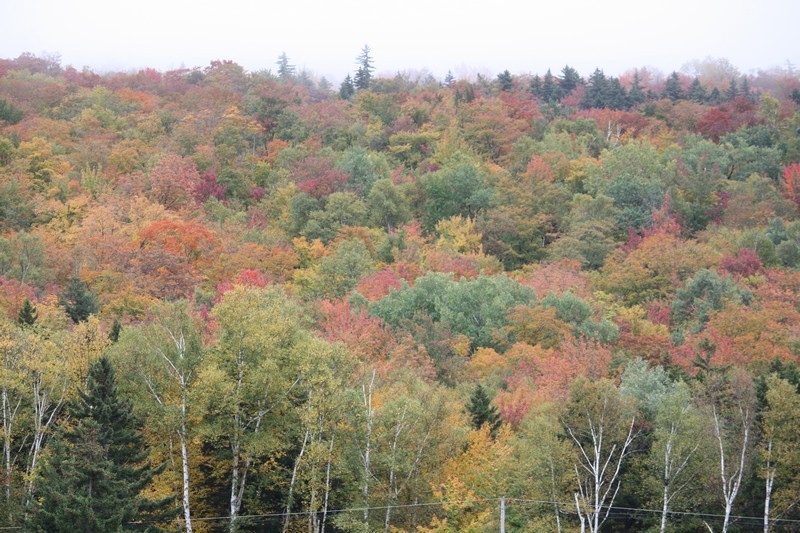 Anschließend sind wir über die erste Covered Bridge des Urlaubs gefahren, nochmal die zwei Meilen nach North Conway zurück, wir wollten uns noch die Scenic Railroad ansehen. Toll, obwohl noch einiges zu machen ist. Für eine Fahrt war aber auch hier das Wetter zu schlecht. So fuhren wir im Anschluss wieder weiter durch die Green Mountains. Eigentlich war der nächste Stop am Mount Washington geplant, dort gibt es eine tolle und anspruchsvolle Panoramastraße, aber auch die war wegen Nebel gesperrt, schade. Wir sind dann weitergefahren, Richtung Maine. In der Gegend gab es aber so gut wie null Infrastruktur und schon gar keine Hotels oder so. So sind wir schließlich in Augusta gelandet, Hauptstadt des Bundesstaates. Hier fanden wir ein schönes Motel 8 und eine Futterbude namens Texas Roadhouse. Dies ist eine Kette, die wir bisher nicht kannten und wir haben bisher was verpasst. Die Atmosphäre ist toll, typisch amerikanisch, mit Countrymusik im Hintergrund. Während man auf's Essen wartet kann man lecker Erdnüsschen knacken und die Schalen wirft man dann einfach auf den Boden. Chris und ich wollen die Idee adoptieren, also Muttern bestell doch schon mal ein Fass Erdnüsschen und einen großen Besen, damit du hinterher nicht so viel fegen musst :) :) Die Steaks und Rippchen waren auch Saulecker.