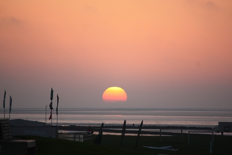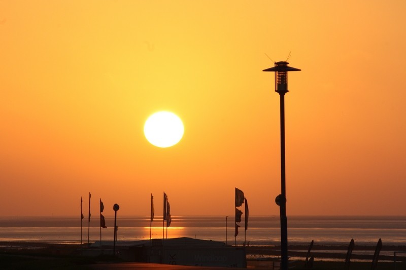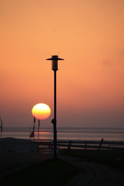 Zurück nach Esens, kurzer Zwischenstop im Hotel, dann abends noch mal los. Frau wollte schliesslich noch was zu Essen und ausserdem gab es trotz einiger Wolken die Aussicht auf einen tollen Sonnenuntergang. Den gab es dann wirklich, nochmal in Neuharlingersiel auf dem Deich. Dabei ist mir auch ein Abendessen vor die Nase gehüpft... soll ich... ach nee, lieber nicht, ich wollte ja zum Griechen (war lecker da)