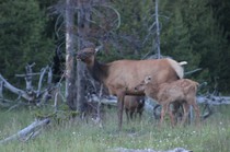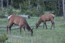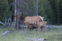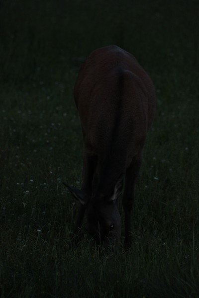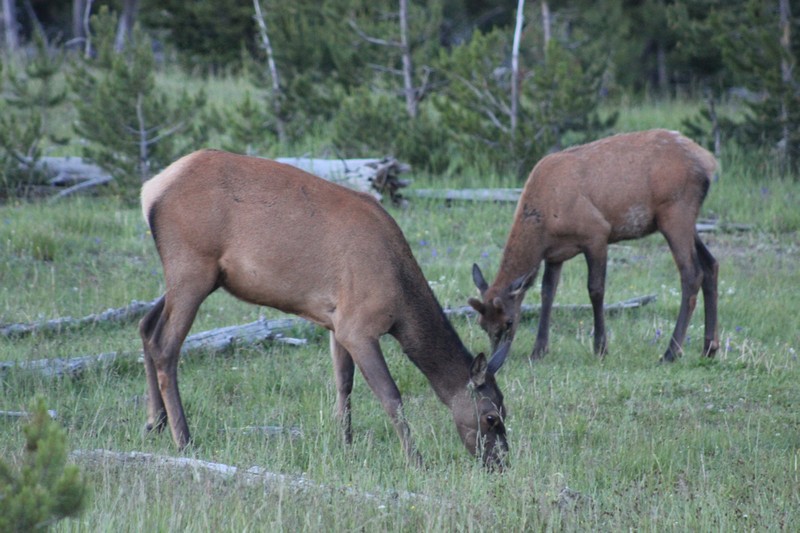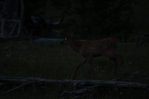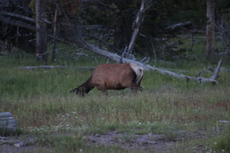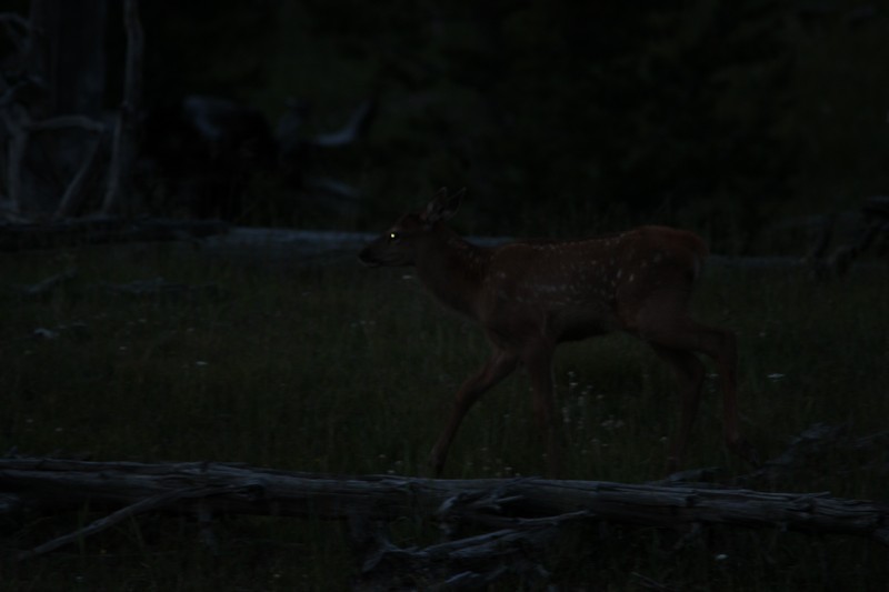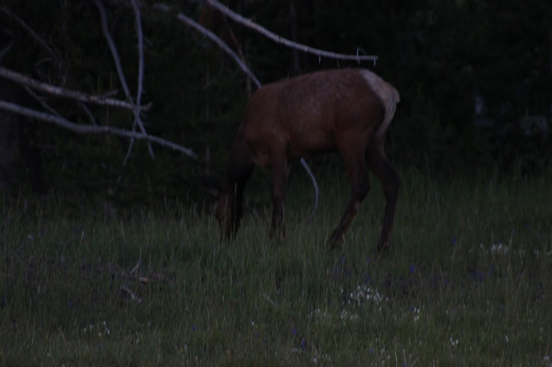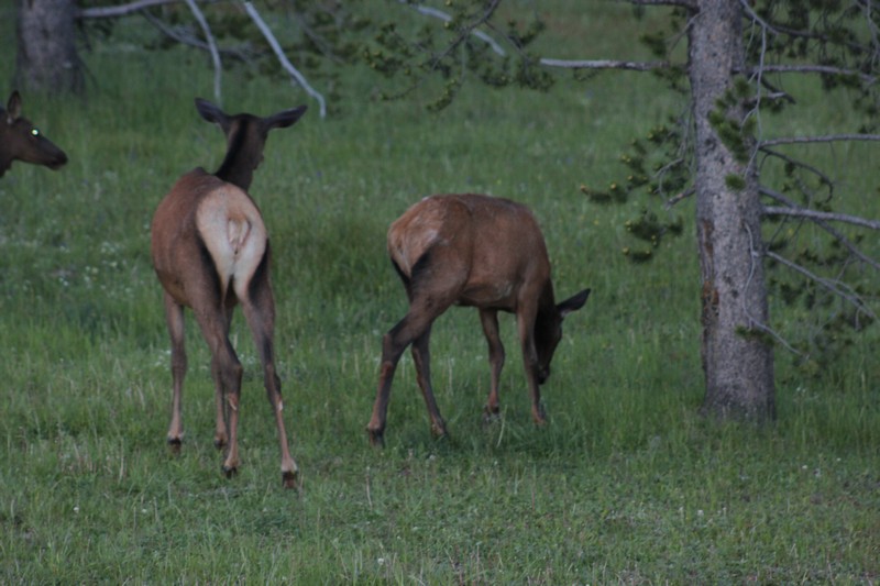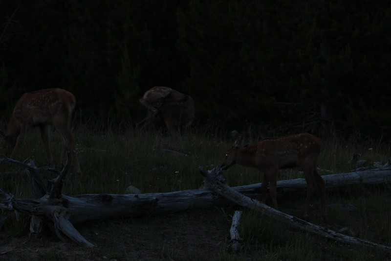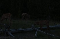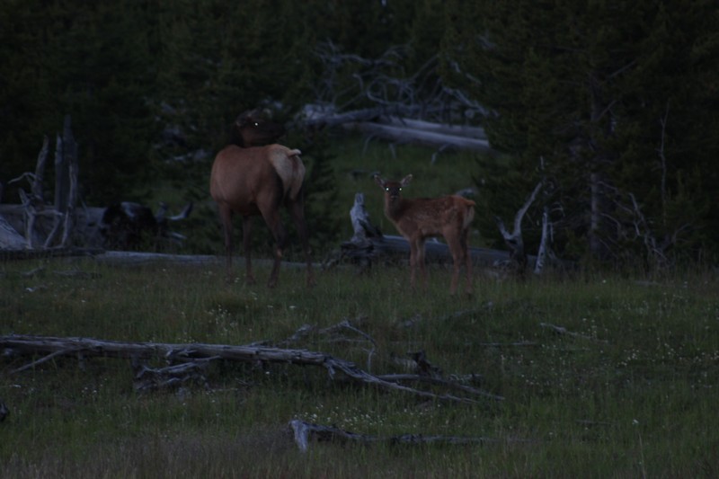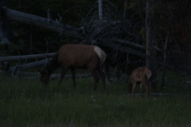 Nach dem Abendessen sind wir nochmal losgezogen in die Dämmerung um Ausschau nach Viechern zu halten und wurden mit einer Herde Wapitidamen am Straßenrand belohnt....