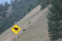 Am Straßenrand stehen immer wieder Schilder, die vor Tieren warnen - sind auch anscheinend nicht so ganz unbegründet....